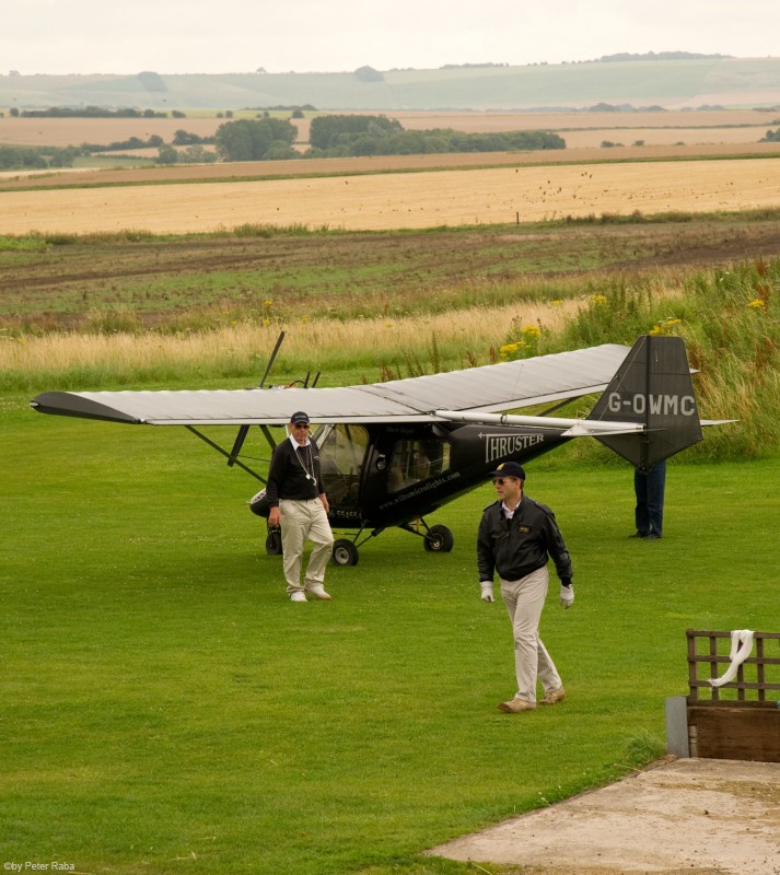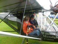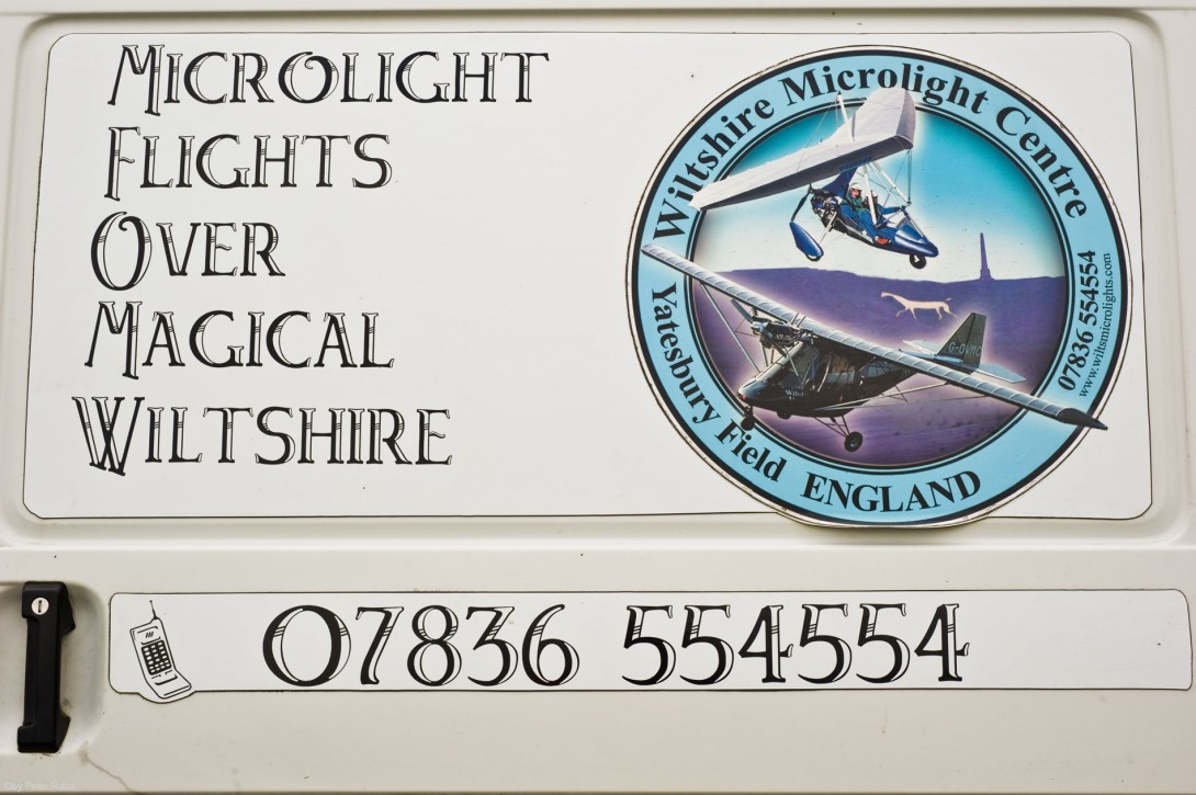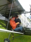 Tony Hughes, Leiter der Flugschule für Ultralight-Flugzeuge auf dem Yatesbury-Flugfeld der alten Grafschaft Wiltshire, hier zusammen mit Julian, einem weiteren der insgesamt drei Piloten, welche Schaulustigen ermöglichen, einen Blick von oben auf die in jedem Jahr neu entstehenden, ebenso erstaunlich anmutenden wie durch ihre Schönheit die Seele tief berührenden Kornkreisgebilde zu werfen. Â