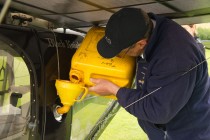 Tony Hughes beim Einfüllen von Sprit in den Tank seiner Maschine der besonderen Art.
