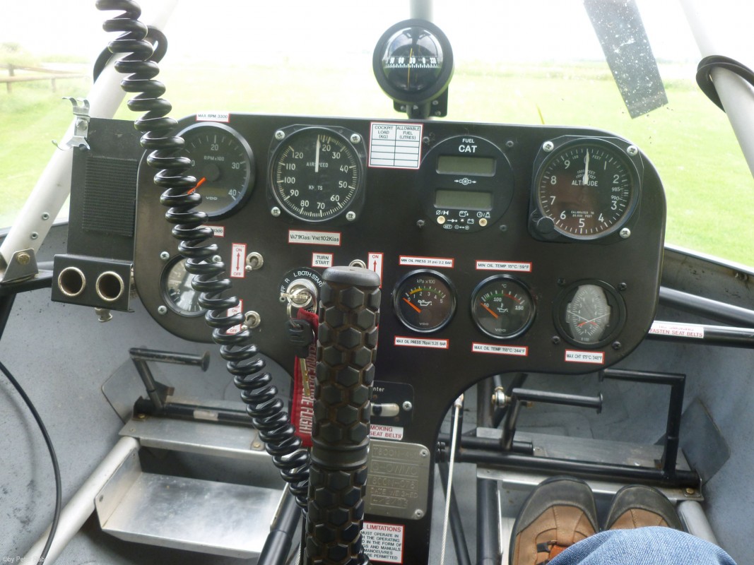 Hier das Cockpit von innen, gerade genug Platz auf der rechten Seite für einen Passagier.