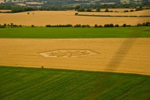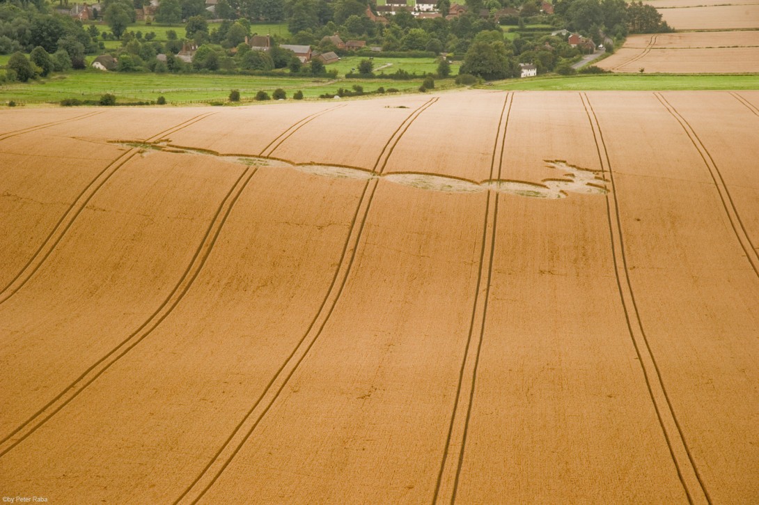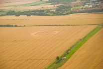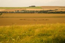 Eine Formation beim Dorf Alton Barnes in einem Feld unterhalb des Milk Hills. Da wir sie nicht direkt überflogen haben, ist aus dieser Position nur schwer zu erkennen, dass es sich dabei um eine Art Raupe mit dornigen Auswüchsen an Kopf und Schwanzteil handelt. Entdeckt wurde sie bereits am 25. Juni 2012, der Bauer widersetzte sich jedoch einer Begehung. Ein Homöopath könnte daraus den Schluß ziehen, dass gerade diese Formation ihm dabei helfen könnte, aus seinem Raupendasein zu erwachen. (Eine Luftansicht ist einzusehen unter www.kornkreiswelt.at).