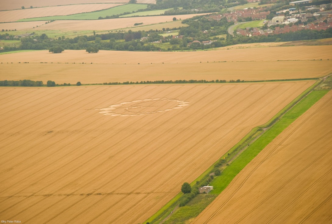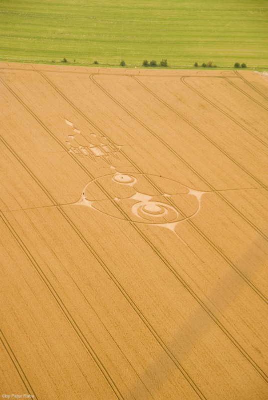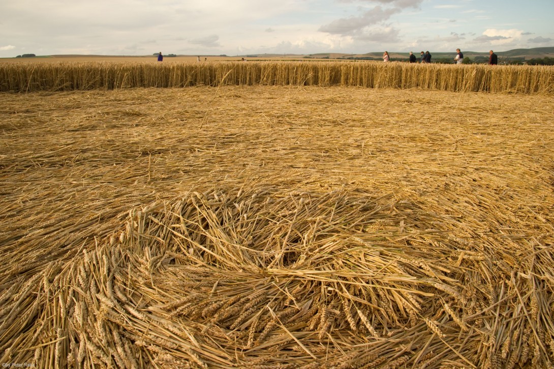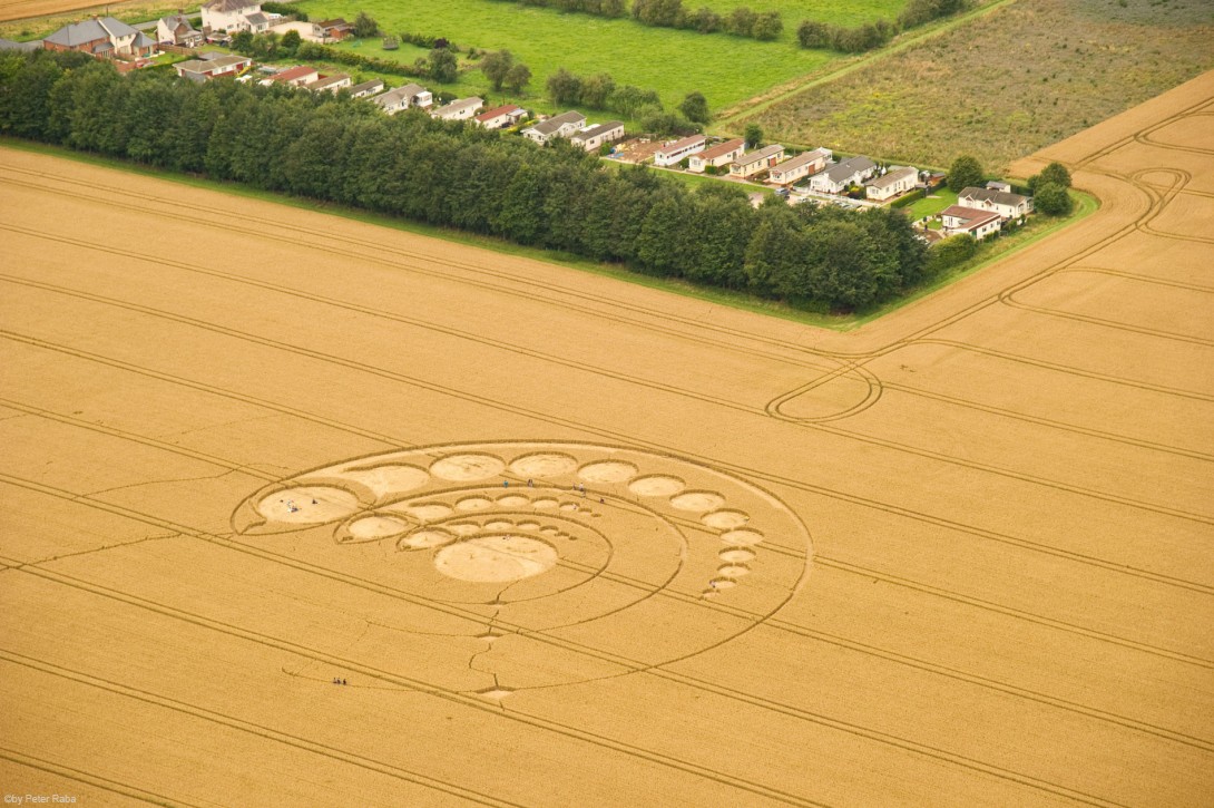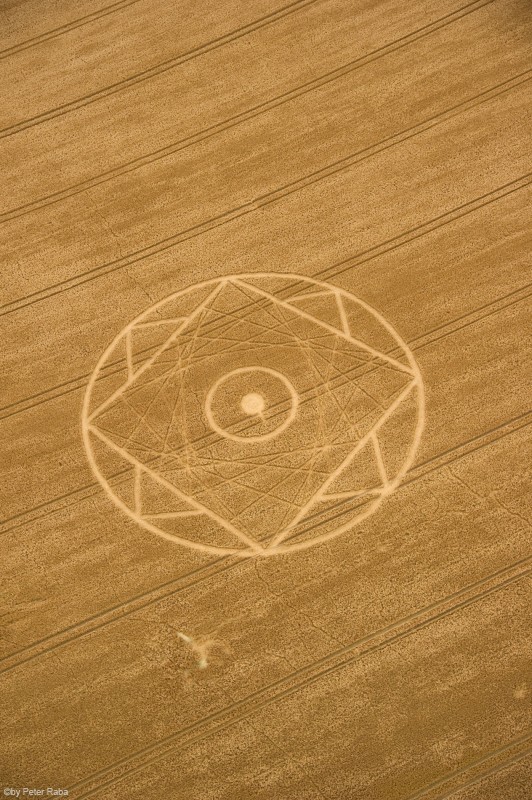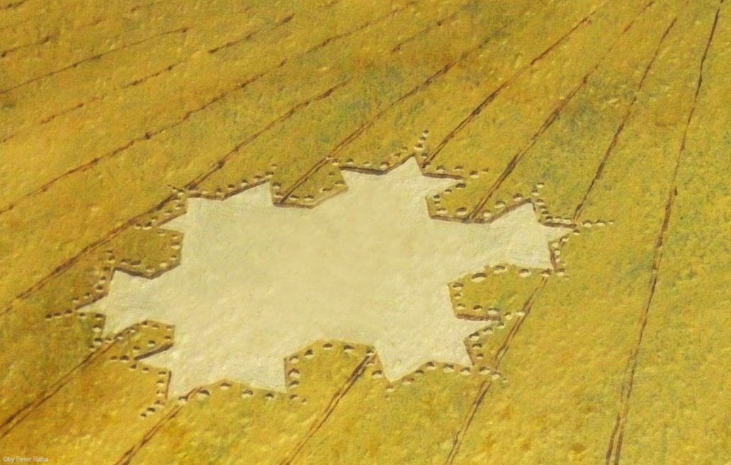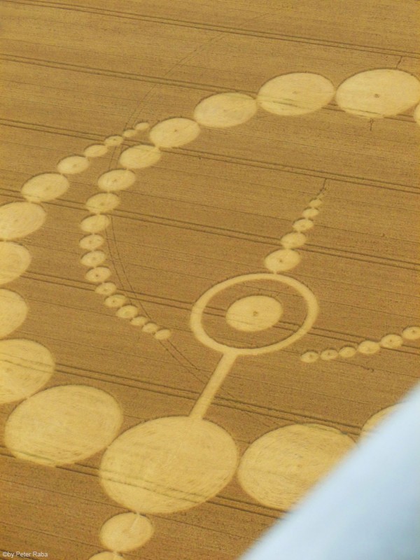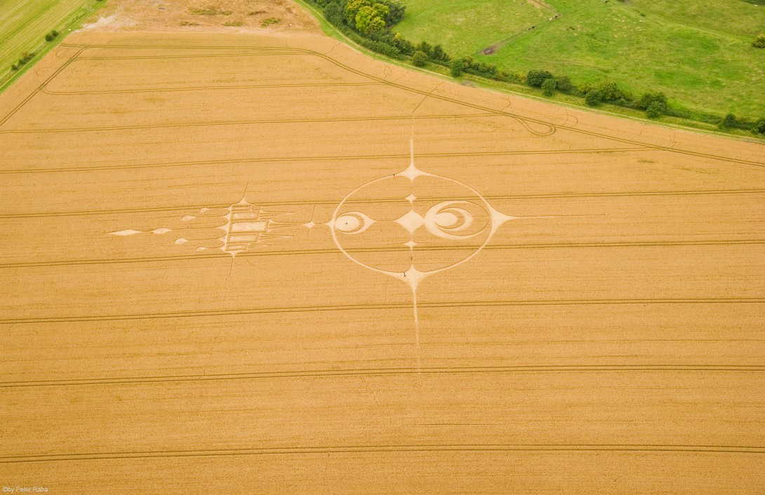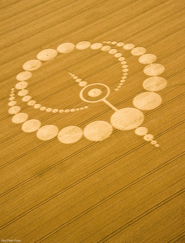 Mehrere Augenzeugen hatten in der Nacht über dem Feld weiße und orangefarbene Lichtkugeln beobachtet, die sich mit großer Geschwindigkeit in triangelförmigen Bewegungen befanden, bevor die Beobachter des Geschehens am Morgen das großartige Gebilde sichteten, das, wie sich später herausstellte wieder nach den Gesetzen der Heiligen Geometrie berechnet und gestaltet war.