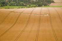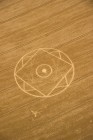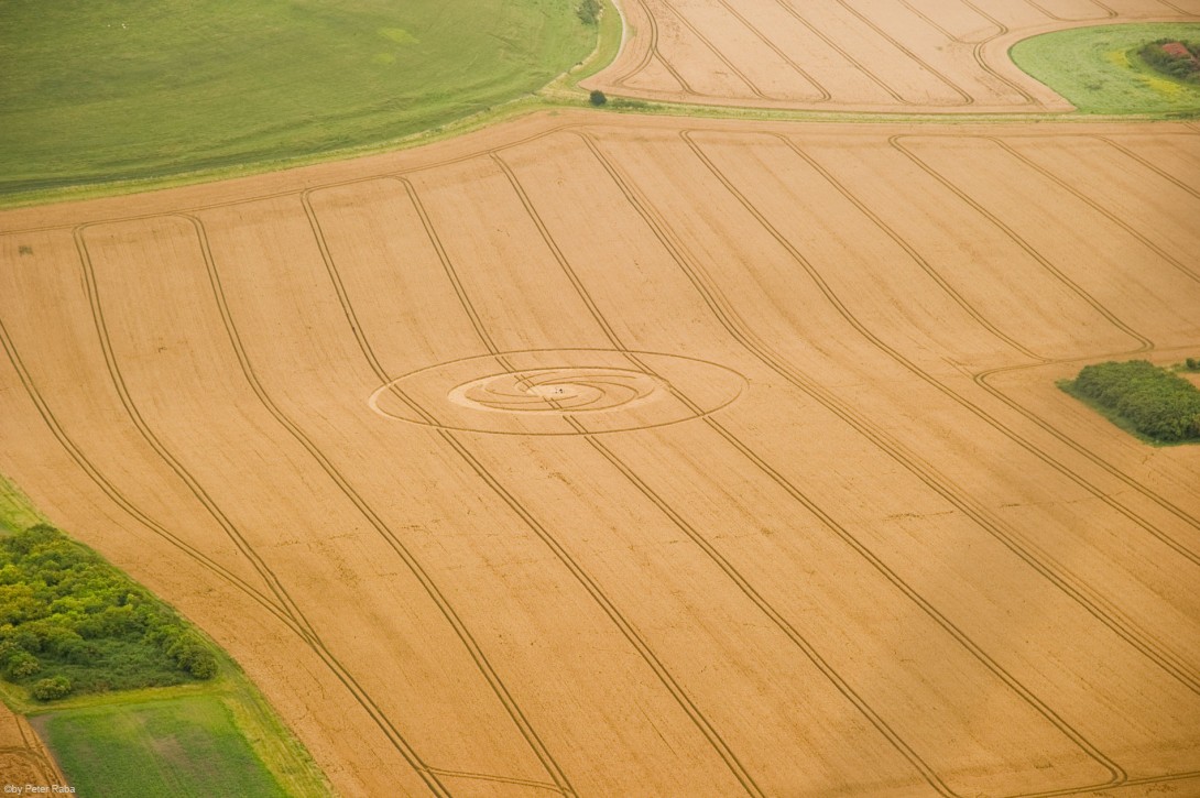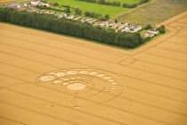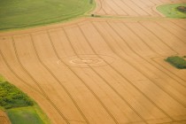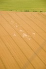 Bereits aus der Luft ist das nach Art eines Korbgeflechts gelegte Getreide im inneren Ring erkennbar.