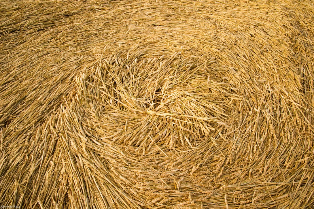 Die wie von einem Wirbelwind erfassten und gelegten Halme in einem der Nebenkreise.