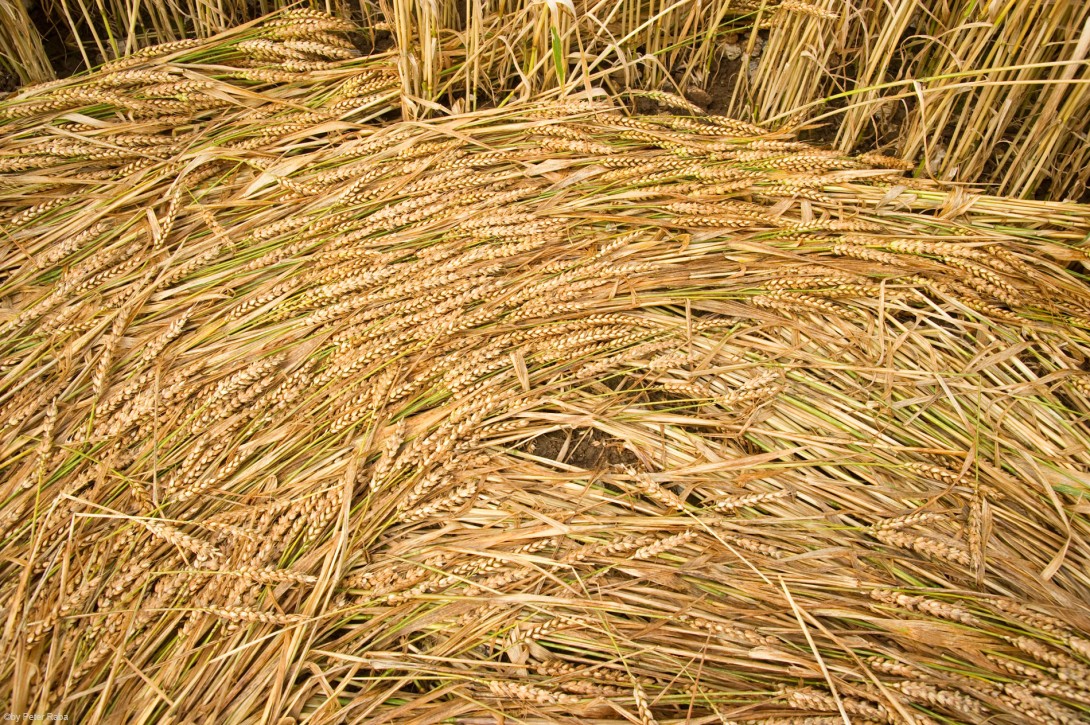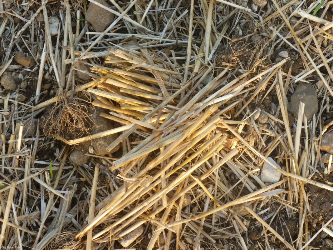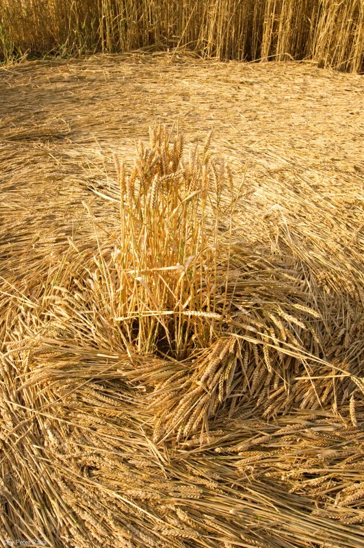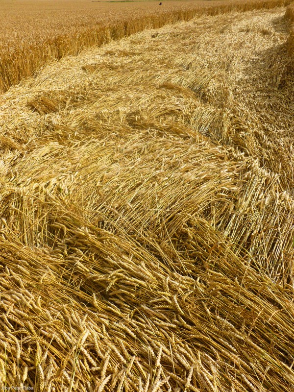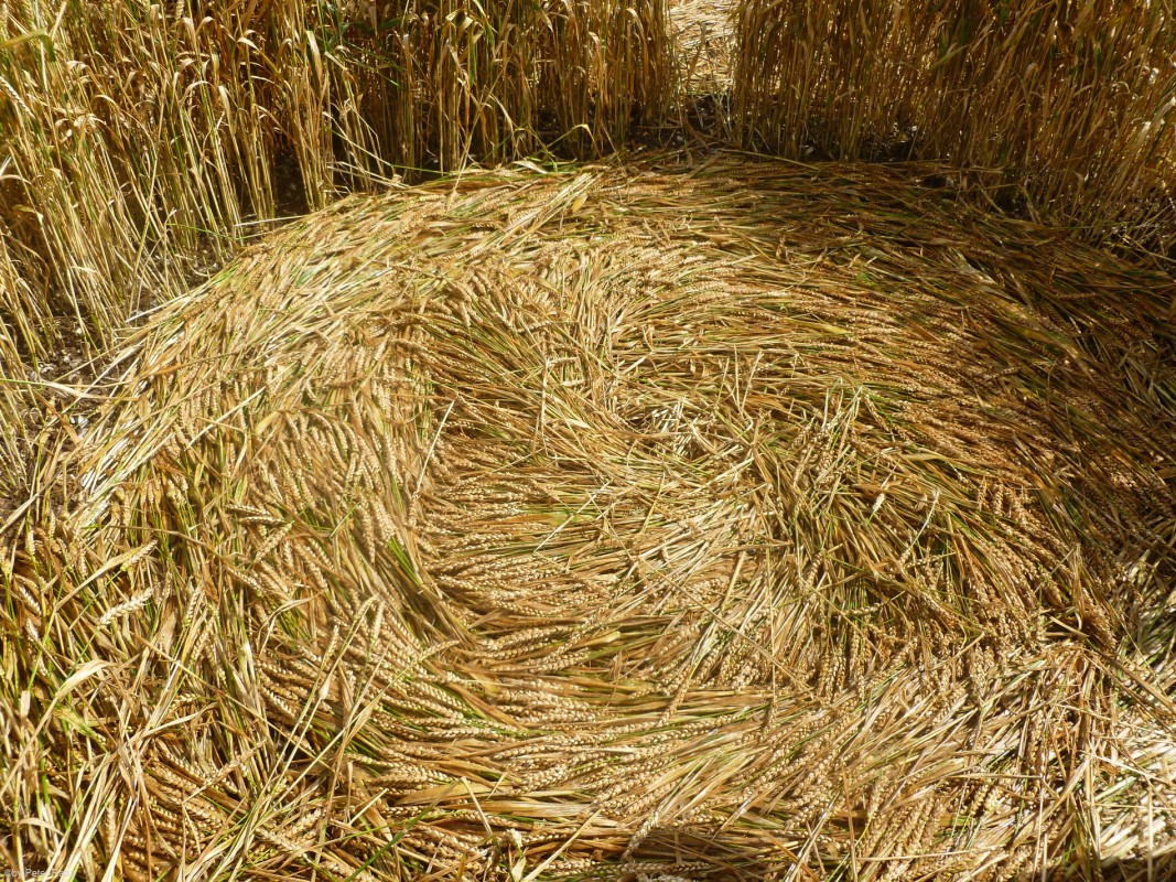 Auch hier deutlich erkennbar die von der rotierenden Energie in Linksdrehung flach gelegten Halme.