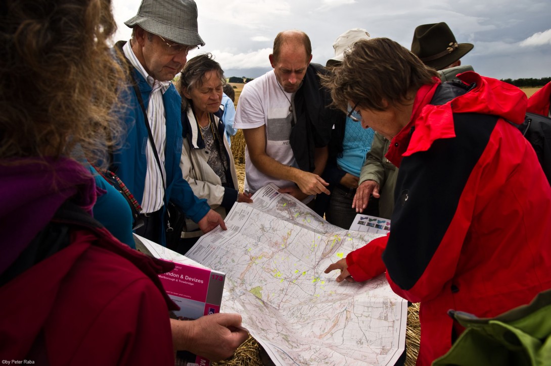 – Neuorientierung anhand der auf der Übersichtskarte eingezeichneten und hauptsächlich ins Auge gefassten Flächen, auf deren Feldern sich Kornkreise gebildet haben.Â