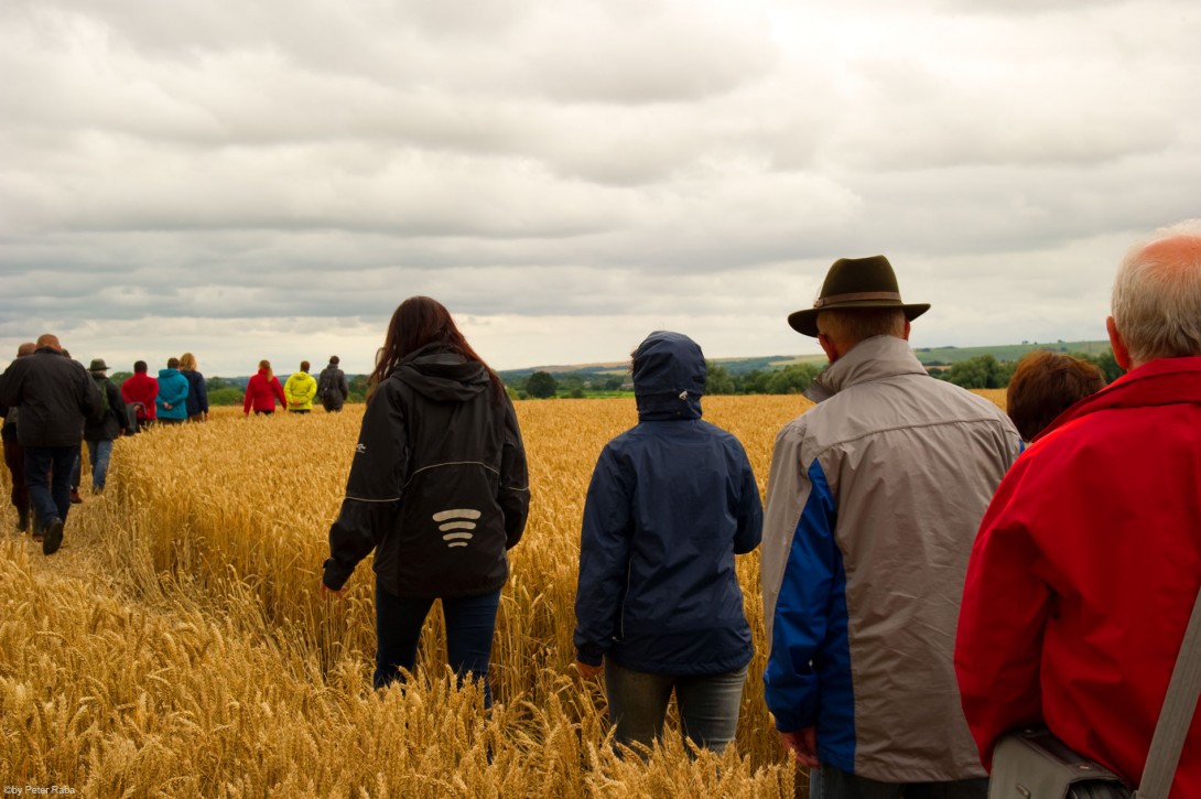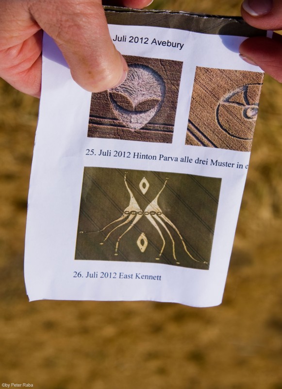 Ein von unserer Führerin Rosa Schwarzl auf einem Luftbild gezeigtes, eher seltenes, fast feminin anmutendes Gebilde, zu dessen Erkundung wir uns per Bus aufmachen. Geformt hat es sich – wie übrigens wie fast alle diese wunderbaren Kornskulpturen entstehen – über Nacht, und zwar am 26. Juli 2012 in West Kennett.Â