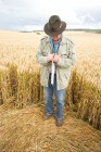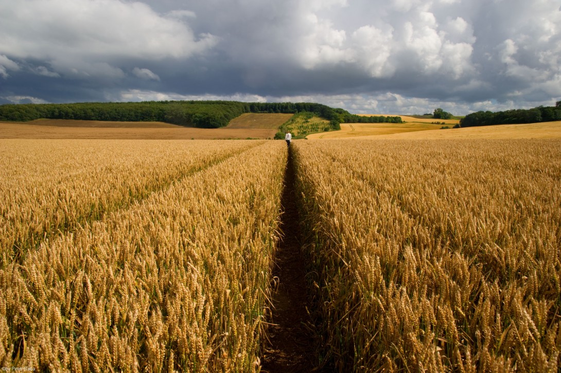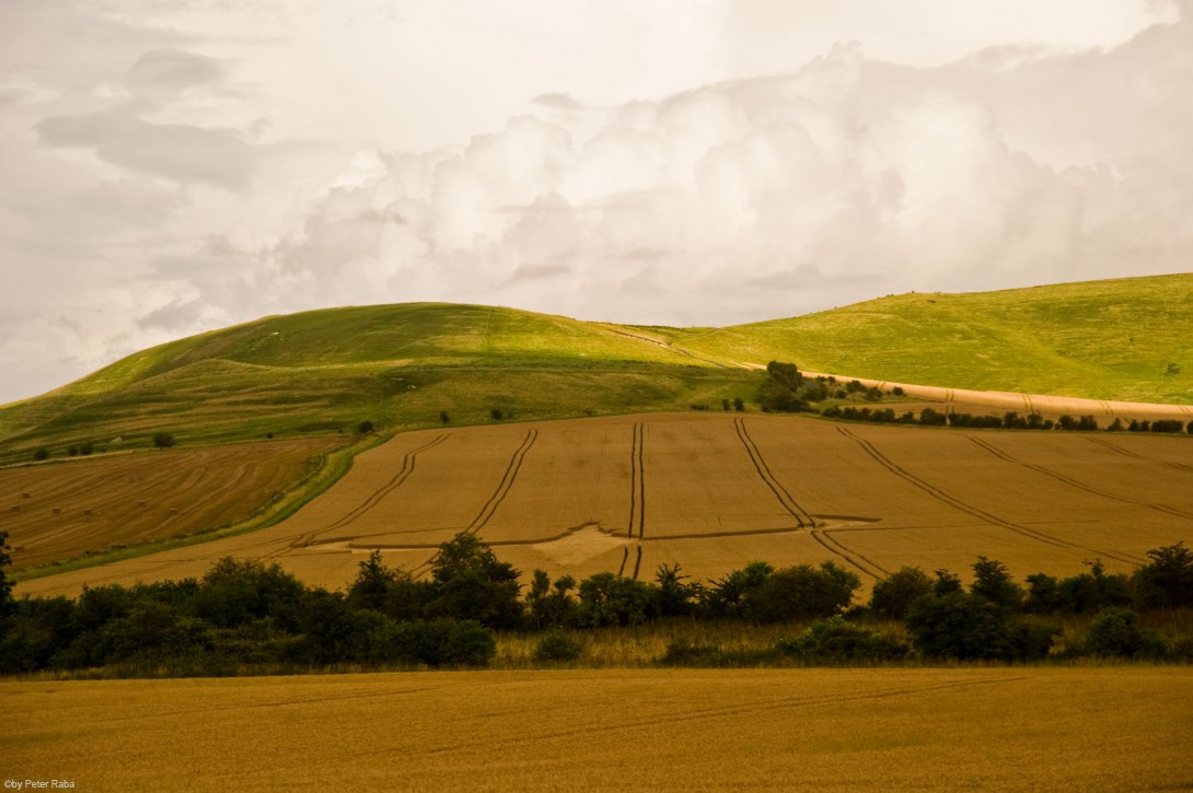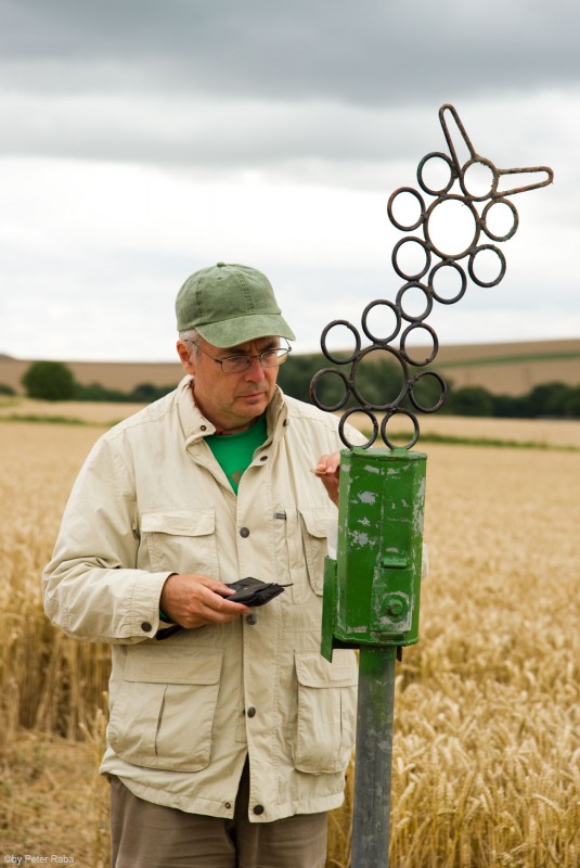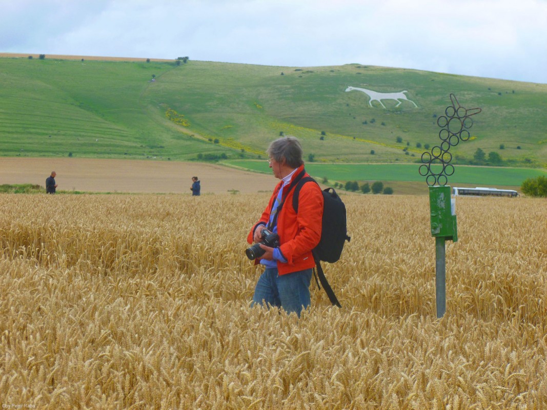 Peter Raba am gleichen Ort im gleichen Feld. Im Hintergrund der sog. Milk Hill mit der Gravur des weißen Pferdes im Kalkgestein.