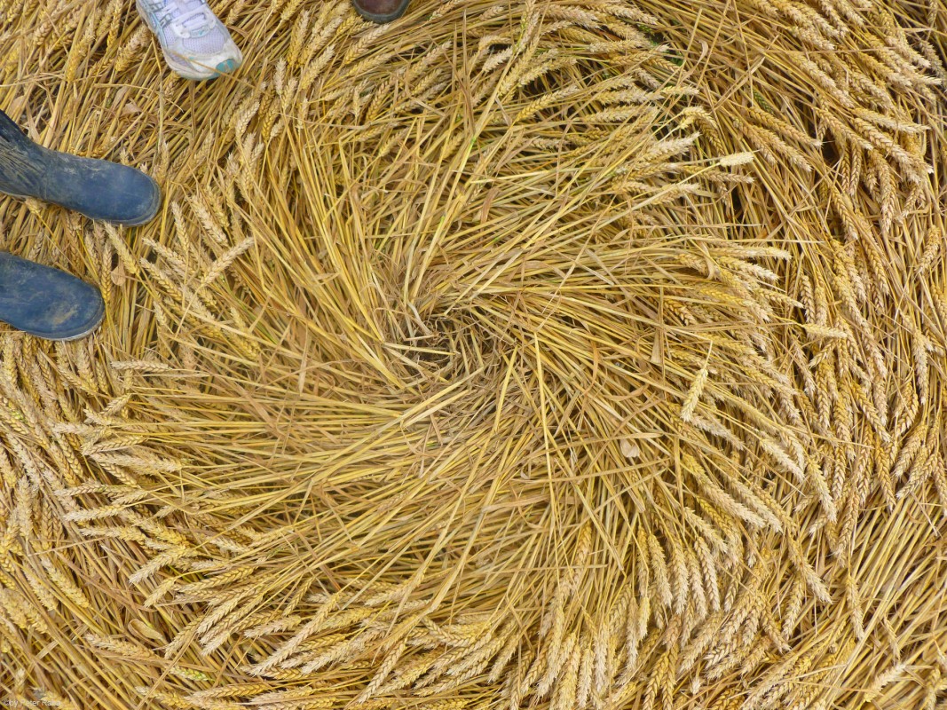 Auch hier wieder wie vielerorts die fein säuberlich in Kreisformation niedergedrückten Ähren.