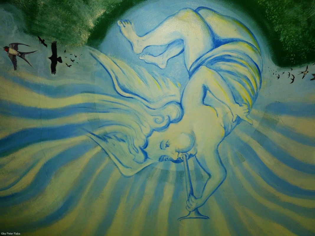 Ein Engel der Verkündigung als Teil des großen Decken- und Wandgemäldes im Gasthaus Barge Inn.