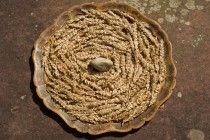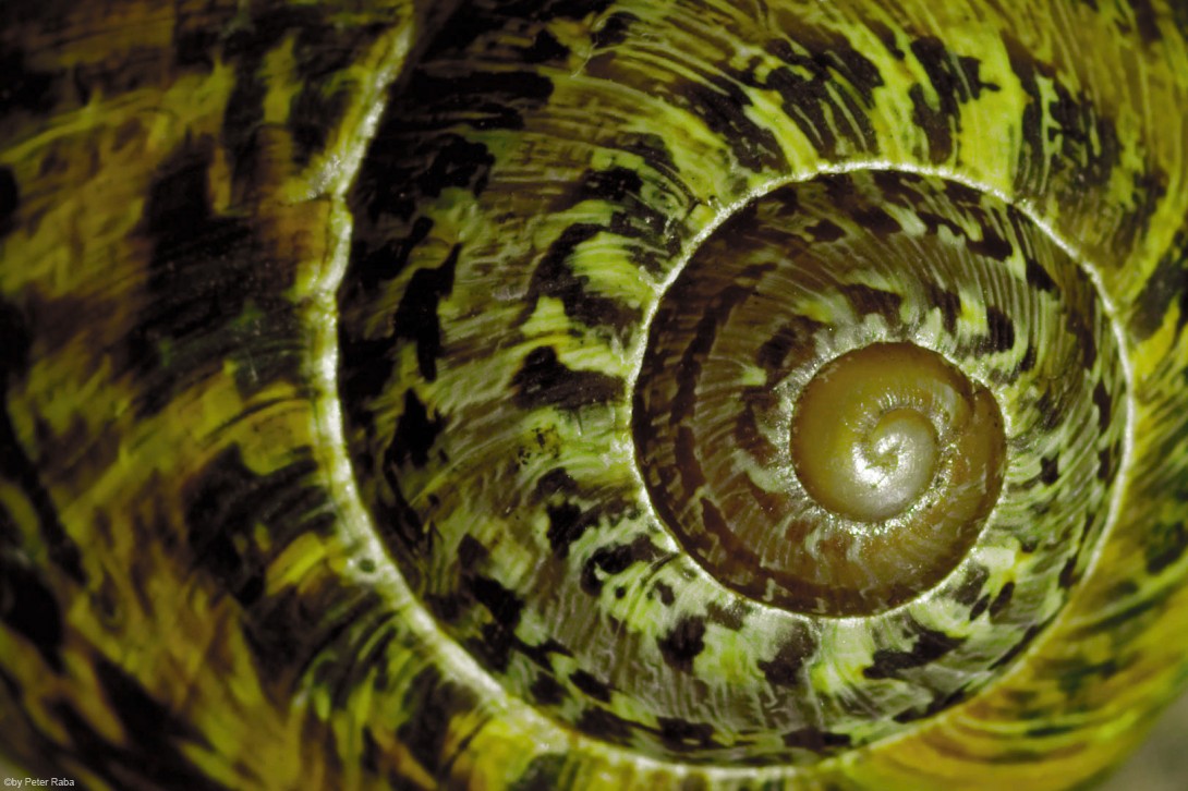 Wie oben – so unten –, wie im Spiralnebel so im Schneckenhaus. Das 3. Hermetische Prinzip durchwaltet den gesamten Kosmos. Dieses leere besonders schöne Exemplar von rund 4 cm Durchmesser fand Peter Raba bei der uralten Grabanlage von Long Barrow/Wiltshire, gegenüber des Silbury Hill.