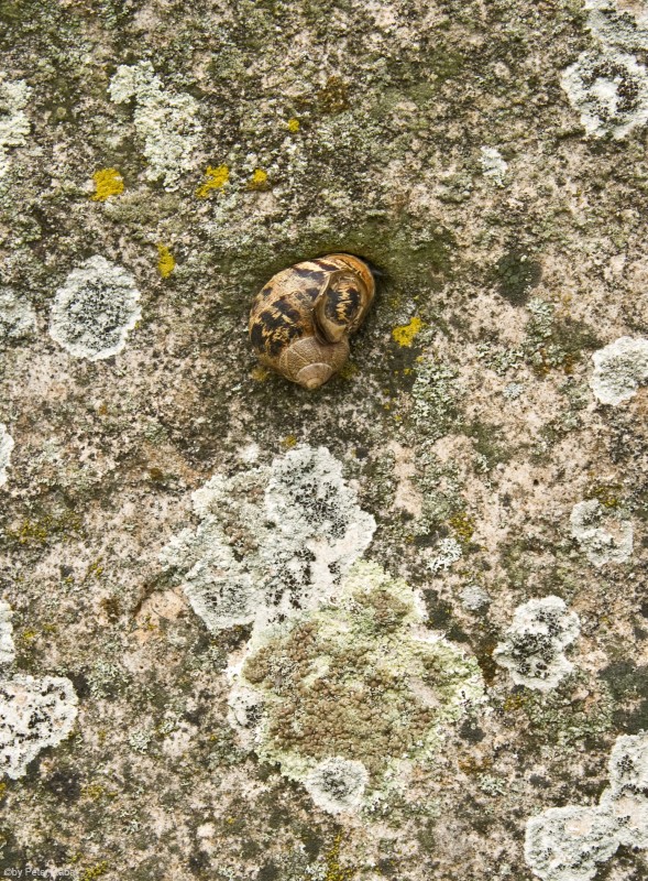 Eine Schnecke derselben Art hatte sich in der Vertiefung eines der gigantischen Menhire rund um die Long Barrow–Grabanlage angesiedelt.Â