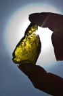 Dieses leicht gewölbte antike Stückchen Glas von 6 mm Stärke entdeckte Peter Raba in einem Acker auf dem Weg zur Long Barrow Grabanlage.