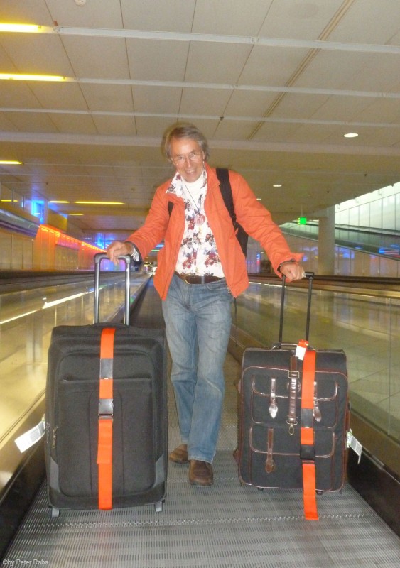 Peter Raba, photographiert von seiner Frau Mona, bereits nach der Ankunft der Gruppe im Münchner Flughafen und auf dem Förderband zum Parkhaus.