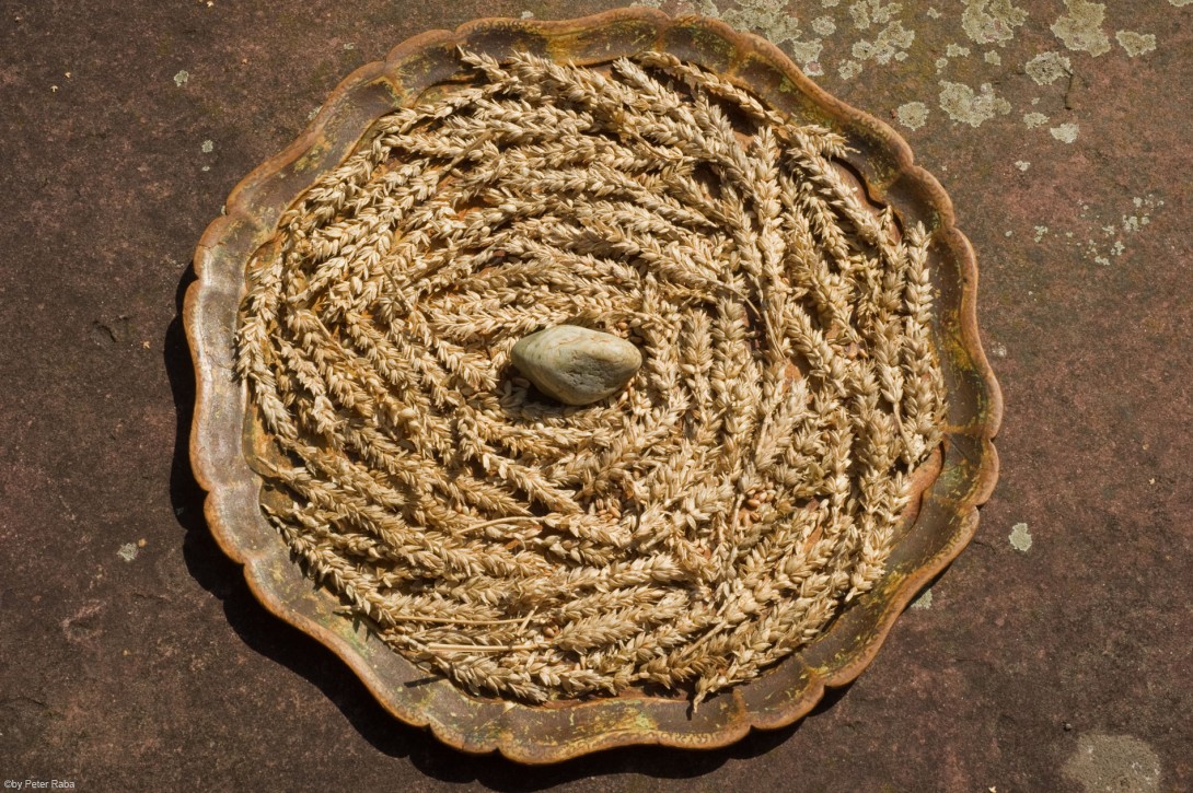 Zuhause angekommen, ordneten wir die uns noch vom Acker geschenkten Ähren um einen Stein –