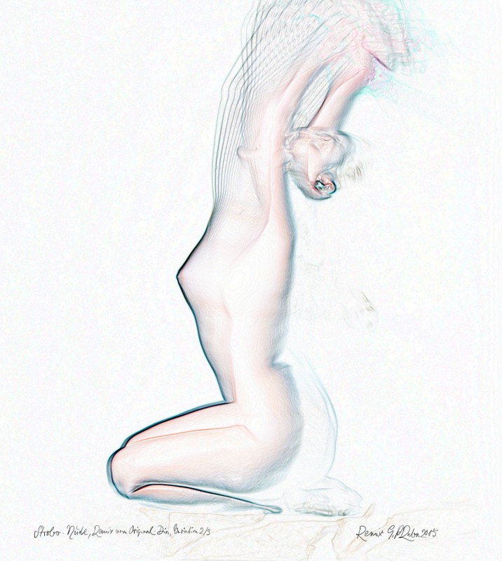 Bei den Darstellungen dieser Kategorie handelt es sich zum Teil um Vintage-S/W-Akt-Aufnahmen junger Frauen in Tanzausbildung. Die Bilder entstanden Ende der 60-er und Anfang der 70-er-Jahre im Münchener Studio von Peter Raba. Die Remixe scheinen bisweilen eine innerseelisch-hintergründige bis überirdische Seite unter der Oberfläche der äußeren Realitätsebene aufzuzeigen. Der Betrachter mag sich dabei an die Maxime von Paul Klee erinnern, welcher forderte, der Maler habe nicht das Sichtbare abzubilden, sondern das Unsichtbare sichtbar zu machen.