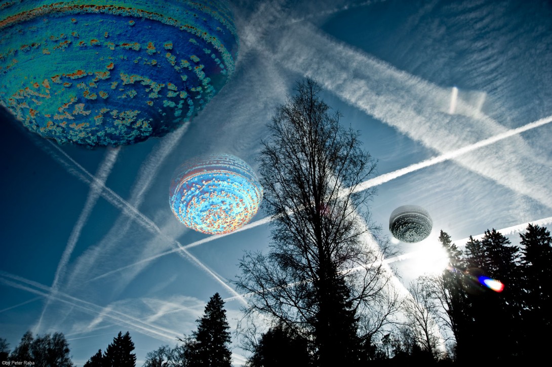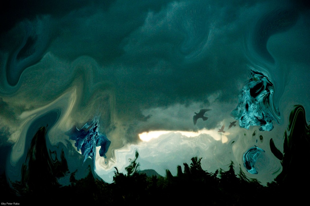 Levitation – ein Wort das aus dem Lateinischen kommt, von levitas , was soviel bedeutet wie „leicht an Gewicht, Beweglichkeit, Flüchtigkeit.“ – In einem guten Sinne geht es also um eine gewisse „Leichtlebigkeit“, ohne dabei in „Leichtsinn“ und „Wankelmut“ abzugleiten. Aber wem gelingt es schon in jeder Situation die „Leichtigkeit des Seins“ zu bewahren, wenn er sie sich überhaupt schon je erworben hat. Es sei denn, sie wäre ihm von seiner Seele in die Wiege gelegt worden. Aber da wir nur ernten können, was wir irgendwann durch die von uns getroffenen „Ent-Scheidungen“ gesät haben, geht es letztlich um die Fähigkeit, eine zur Hälfte leer getrunkene Flasche noch halb voll zu sehen. Die schreckliche Wahrheit heißt: wir selbst sind der Informant unserer Gene, und zwar durch die Art unseres Denkens und Handelns. Es ist viel Zeit investiert worden, um die Gefängnisse zu installieren, in denen wir sitzen. Um daraus auszubrechen, bedarf es der Vorstellung, das scheinbar Unmögliche für möglich und machbar zu halten, um danach erstaunt festzustellen, dass wir größer sind, als wir dachten. Wer allzu sehr am Irdischen haftet, wird sich nicht aus seiner Engstirnigkeit lösen und den Giganten, der er bei seinem Antritt in dieses Erdenleben einmal war, wieder erkennen können. Was also hindert uns daran? Ein Künstler sucht und findet Lösungen aus der Verstrickung. Allein, – wir sind alle Künstler! Nicht nur die Maler des Surrealismus haben uns einen Blick werfen lassen in die plutonischen Tiefen der unsichtbaren, der geistigen Welt hinter den äußeren Erscheinungen: Nur weil er den Wirbel als die Antriebskraft des gesamten Universums im Großen wie im Kleinen erkannte, war ein van Gogh ermächtigt, seine Gemälde mit dieser wabernden Wirbelkraft zu erfüllen. Nur weil er sich die richtigen Fragen stellte und selbst die Antworten aus seinen eigenen Tiefen hervor holte, konnte ein Kandinsky seine Schrift Über das Geistige in der Kunst verfassen und erkennen: Kunst ohne Botschaft bleibt l’art pour l’art. Inzwischen haben sich die Grenzen zwischen Malerei und Photographie nicht nur verwischt. Durch die Möglichkeiten der verfeinerten Technik im Grenzbereich zwischen Licht und Materie sind sie aufgehoben. So können wir ohne zu zögern von einer malerischen Photographie sprechen oder von einer photographischen – „mit Licht schreibenden“ Malerei. – Panoptik –pan-optic – das ist die Fähigkeit über die selbst gesetzten Grenzen hinaus „alles zu sehen“, die Kräfte des Unsichtbaren ebenso wie das selbst Geschöpfte: „Believe in your dreams!“