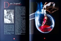 Das Mädchen in der Retorte: eine Doppelbelichtung auf ein und demselben Diapositiv 6x6 (Kamera: Hasselblad 500 C, Broncolor-Studioblitzanlage).